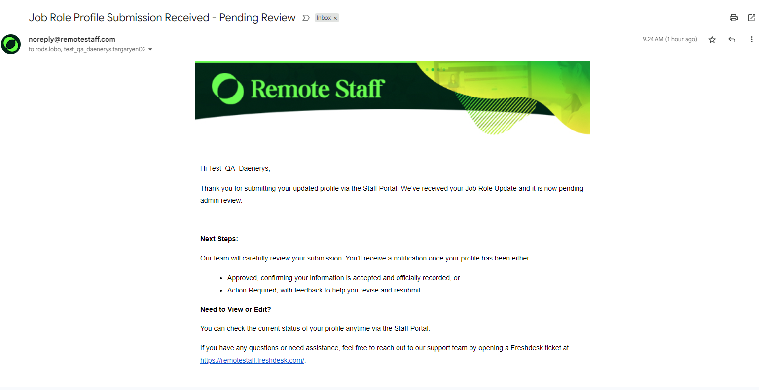 - Remote Contractors will receive email notifications once their profile has been rejected or approved by the Admin.