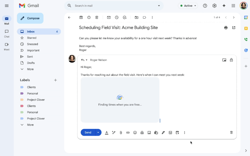 You can customize the times that Gemini suggests by removing or adding additional options, and then insert them directly into your Gmail message. Once the recipient receives the email and selects a time that works for them, a Calendar invite will automatically be added to both individual’s calendars. At launch, this feature will only support scheduling between two individuals, not groups.