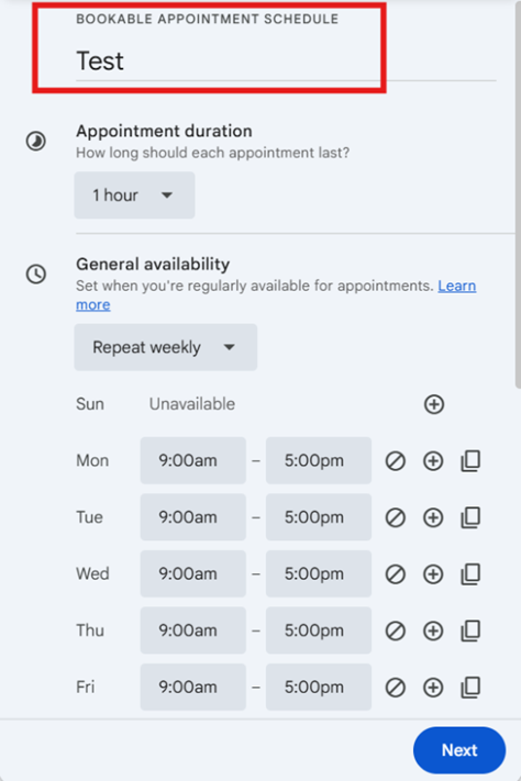 · Scheduling window (how far in advance people can book)